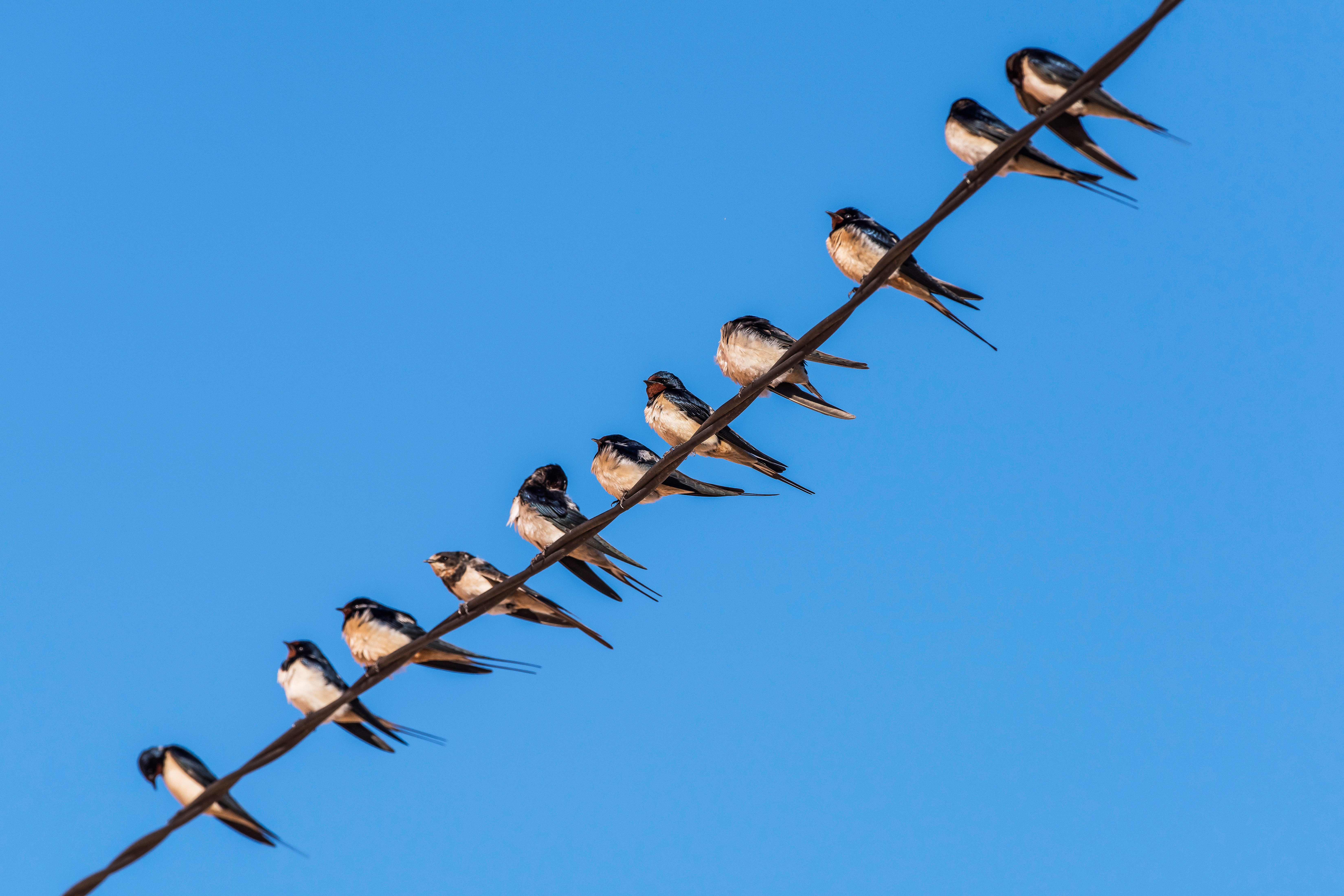 Dès le mois d’août, les premières hirondelles rustiques se rassemblent en nuées. En septembre, elles quittent la Suisse pour s’envoler jusqu’au Sahara, en Afrique occidentale ou orientale. Dès le mois de mars, on peut voir les premières hirondelles revenir, mais une hirondelle ne fait pas un été. Il faudra attendre au moins la mi-avril pour qu’elles soient toutes de retour et retrouvent leurs lieux de reproduction ancestraux.